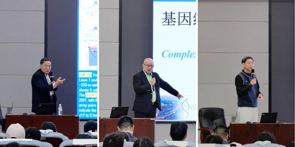 访问期间,来访专家团郦永刚教授、美国人类生态研究院院士李百炼教授、美国加利福尼亚州环保署水质控制管理局洛杉矶分局地下水污染防治和清理处处长容躍高级工程师为师生代表分别作了题为“发震深度多层断裂带低速波导效应建模与观测”“融合大数据生态学和基因组学——从数据到动态系统的理解和预测”“地下水修复的可持续性探讨”的学术报告。专家团还与师生代表进行了座谈交流,共话学习与成长。