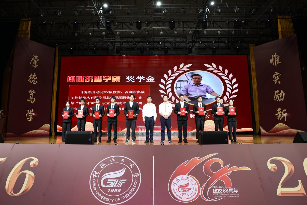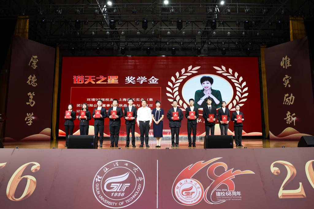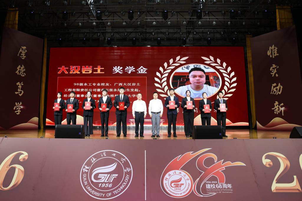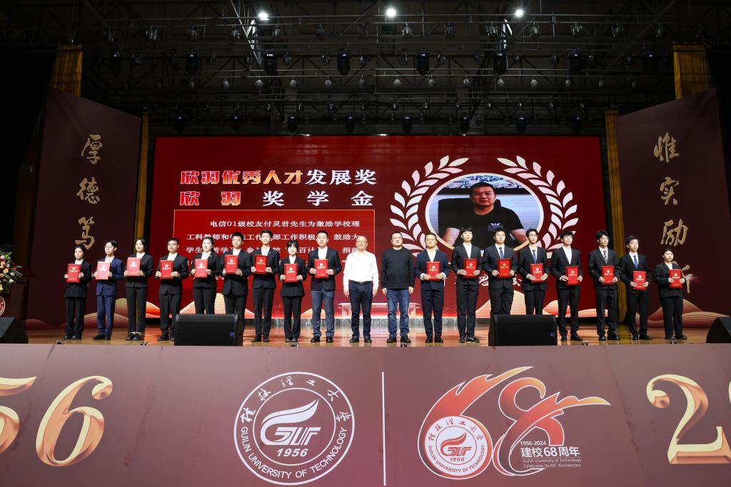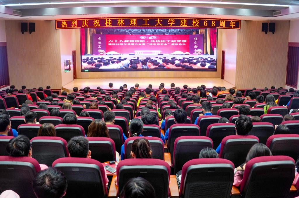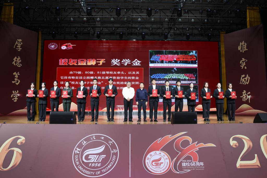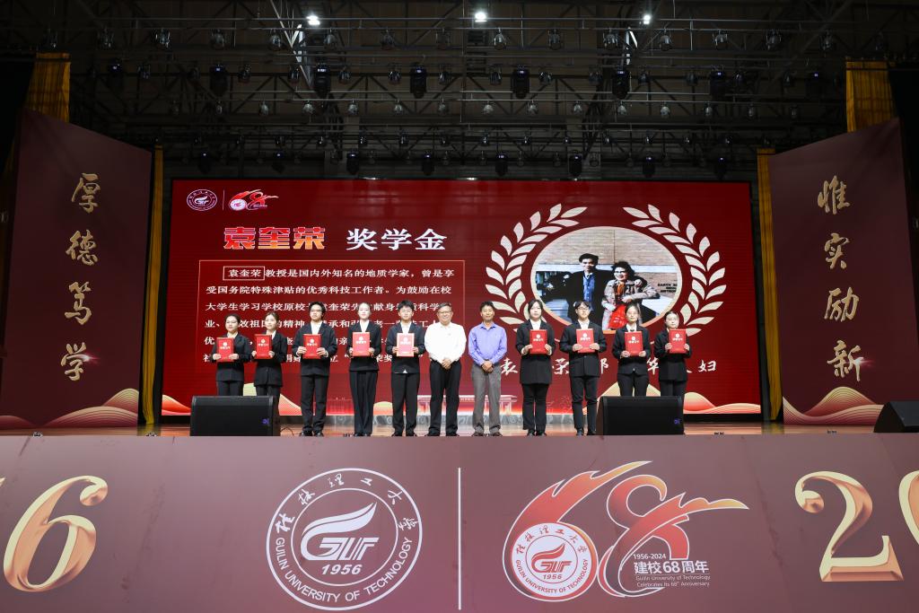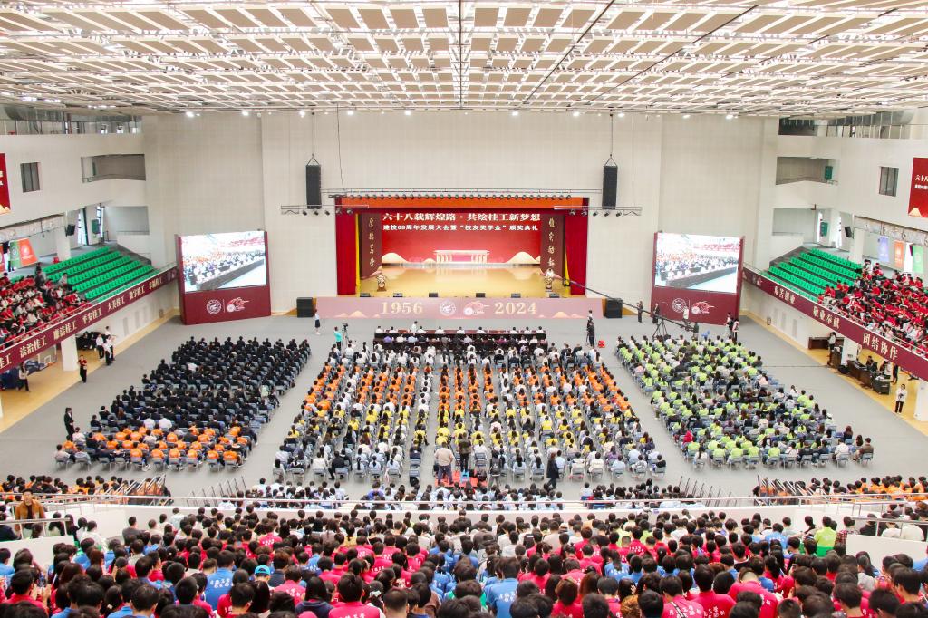 11月10日,学校隆重举行建校六十八周年“六十八载辉煌路·共绘桂工新梦想”发展大会暨“校友奖学金”颁奖典礼,总结回顾学校68年的奋进之路,展望桂工的美好未来,并对获奖师生予以表彰。