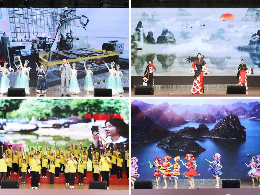 大会最后,学校大学生艺术团、材料科学与工程学院、艺术学院、公共管理学院学生代表用舞狮、舞蹈、歌曲串烧等形式多样、精彩纷呈的表演为母校送上了特别的祝福。