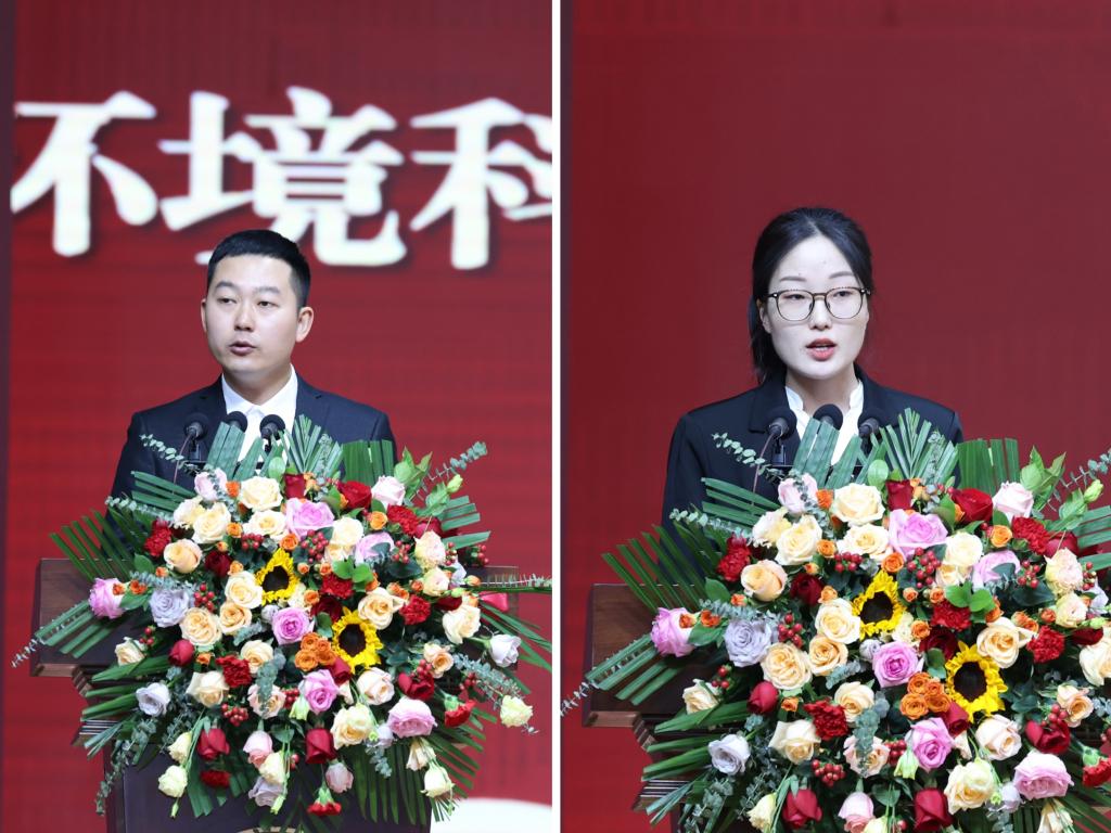 环境科学与工程学院俞果老师作为获奖教师代表发言。他从“独木难成林,科研需合力”“实践出真知,科研需勤奋”“岁月鉴初心,科研需热爱”三个方面分享了在教学科研道路上的切身感受,表示将以无畏的勇气探索未知,以创新的思维挑战自我,不断追求卓越、心怀感恩,为学校早日建成特色鲜明、国内知名的高水平理工大学贡献自己的力量。