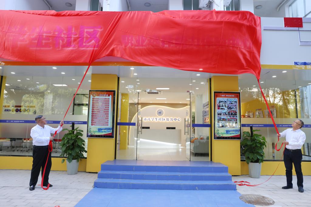 随后,邓军书记、王敦球校长共同为“一站式”学生社区(三期)揭牌,并参观“一站式”学生社区(三期)的相关功能区。