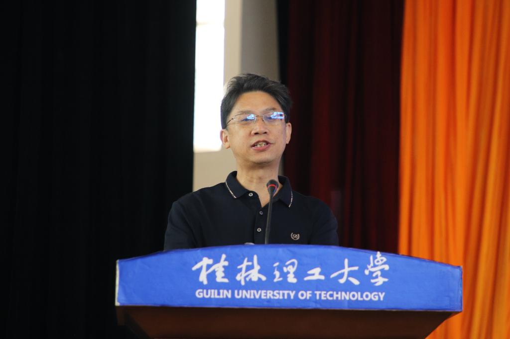 广西高教学会图书馆专业委员会理事长、广西高校图书情报工作指导委员会主任委员、广西大学教授王承就讲话