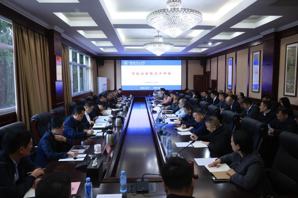 邓军就进一步做好学校安全稳定工作强调,安全稳定是我们做好一切工作的前提和基础,来不得半点松懈,必须时刻保持“如履薄冰”的紧迫感和“时时放心不下”的责任感,真正筑牢安全底板、守住安全底线,以高质量安全护航学校高质量发展。一是要提高政治站位,强化政治担当,深刻认识、准确把握总体国家安全观的丰富内涵、核心要义,坚持系统观念、底线思维,坚决筑牢校园安全思想防线;二是要聚焦重点领域,紧盯关键环节,全面深入开展安全隐患排查,统筹兼顾抓好安全教育管理,努力提升多维感知风险预警,扎实推进应急处置能力建设,扎实推动校园安全稳定工作走深走实;三是要强化责任担当,压紧压实责任,狠抓工作落实,强化信息报送,严肃追责问责,确保校园安全稳定工作取得扎实成效。他指出,当前国内外形势复杂多变,学校发展面临的安全挑战依然十分严峻,大家要始终把安全工作摆在重中之重的位置,始终把师生生命财产安全放在第一位,进一步增强责任感和使命感,以更加饱满的精神状态、更加强烈的担当意识投入学校安全稳定工作中,为学校的安全稳定发展贡献更大力量。