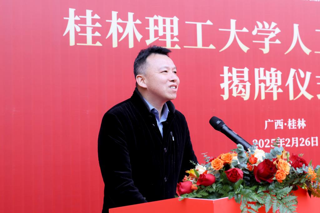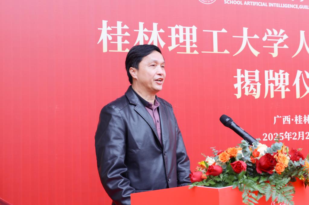 邓军代表学校党委对人工智能学院的成立表示热烈祝贺,向各位领导、专家、来宾和师生的到来表示诚挚欢迎,向一直以来关心和支持学校建设发展的桂林市各级党委政府、各位领导、社会各界表示崇高敬意和衷心感谢。他指出,为抢抓新一轮科技革命和产业变革的战略机遇,加快培养具备人工智能相关交叉学科知识的高素质人才,积极服务国家战略和地方高质量发展需求,助推产业优化升级、生产力整体跃升,beat365精心筹备、挂牌成立了人工智能学院。他表示,学校党委将全力支持人工智能学院建设,推动学院进一步加强内涵建设,凝练人工智能专业方向,着力打造人工智能人才培养基地;全力加快优化人工智能研究院,打造“人工智能+”研究创新基地,强化有组织的科研攻关,为国家和广西人工智能产业创新发展提供科技创新支持,推动区域经济高质量发展;全力加快推进学校各学科专业“人工智能+”升级改造行动,让学校学科专业紧密对接国家和区域人工智能发展战略,着力把学校打造成为多学科深度交叉融合的人才培养示范基地;全力加快推进数字桂工、智慧校园建设与升级,让“数字桂工”赋能学校内部治理与管理效能更好,推动学校加快发展高质量发展,为奋力谱写中国式现代化广西篇章作出新的更大贡献!