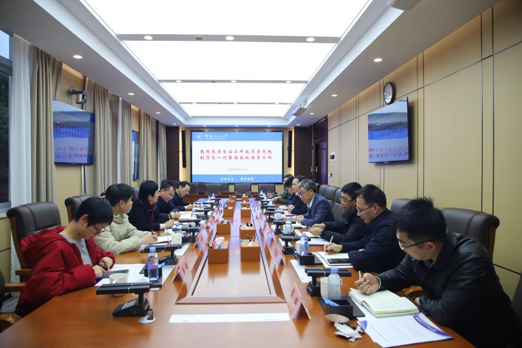 3月5日下午,广西壮族自治区科技厅副厅长李克纯一行莅临beat365,就“人工智能+”、广西关键金属产业规划以及重大科技项目等情况进行专题调研。桂林市科技局党组书记、局长曹方明等陪同调研。学校副校长周国清,党委常委、副校长黎贞崇热情接待了来访团。