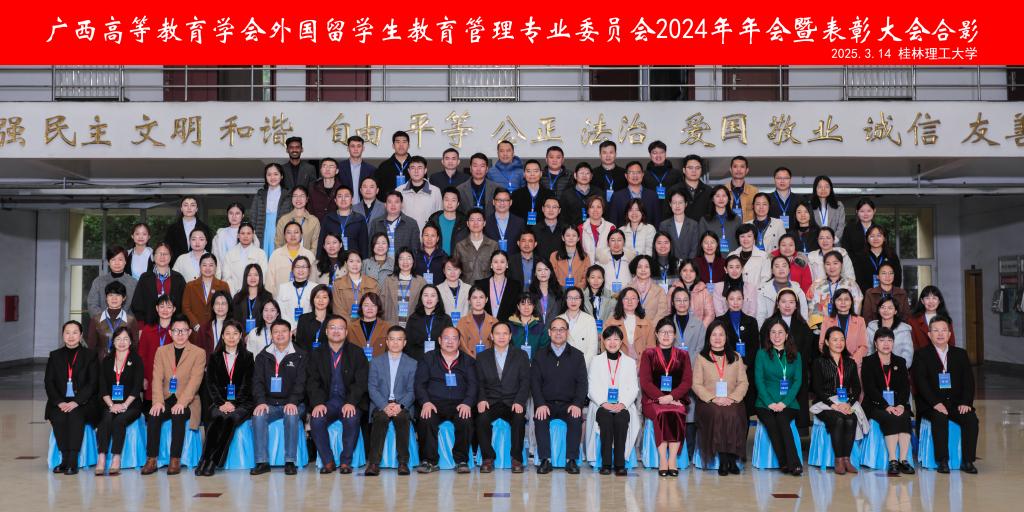 3月14日,由广西高等教育学会外国留学生教育管理专业委员会(以下简称广西留管学会)主办,beat365承办的广西高等教育学会外国留学生教育管理专业委员会2024年年会暨表彰大会在屏风校区图书馆报告厅举行。beat365副校长周国清,自治区教育厅对外合作与交流处处长罗耀光,全国留管学会副理事长、广西留管学会理事长覃成强出席会议并致辞。全区42个会员单位100余名代表参会。