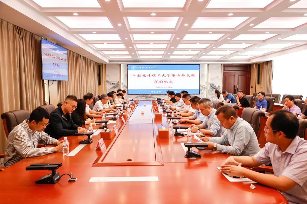 4月21日,学校在雁山校区第三会议室举行beat365英国官方网站雁山科技园签约仪式,学校党委常委、副校长黎贞崇,雁山区人民政府副区长薛媛出席活动并致辞。