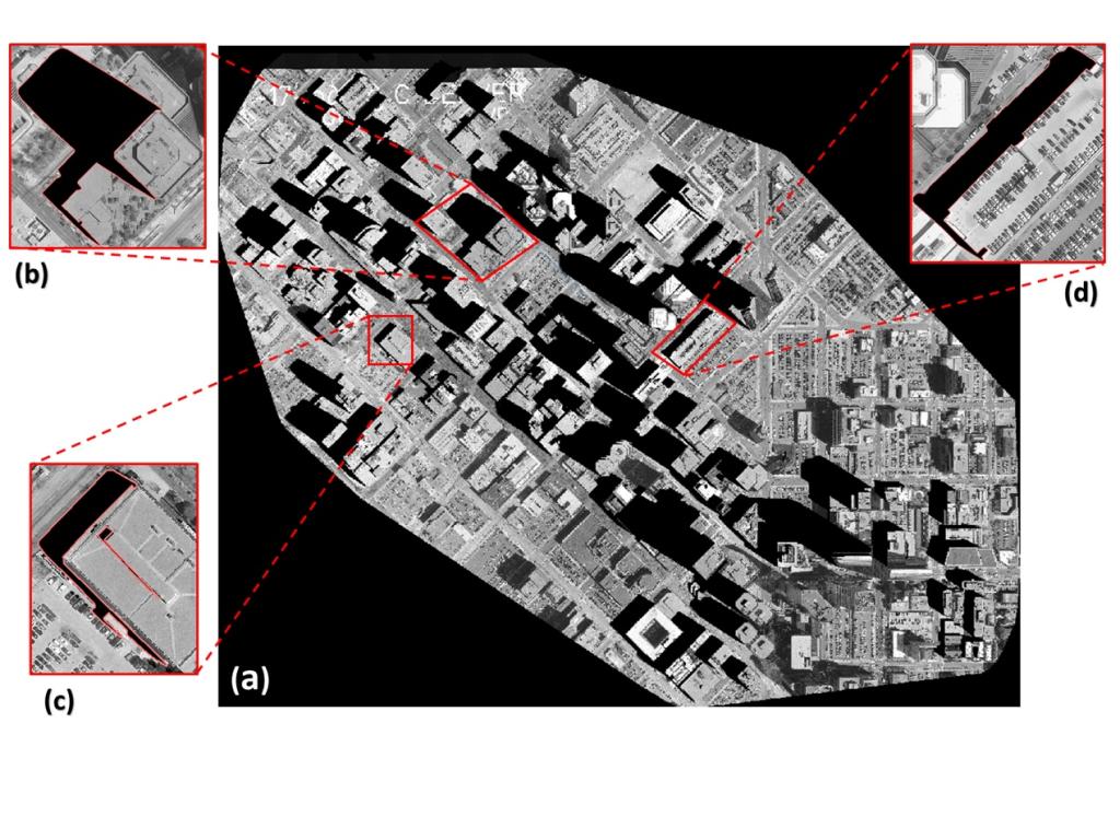该专利通过人工生成的建筑物阴影与正射影像中的阴影进行整体松弛匹配,可以更直接地确定建筑阴影的位置,更精准地获取建筑物阴影的边界,成功解决了本领域存在的“现有阴影检测算法应用局限性大、检测精度低”的关键性技术难题。成果应用范围涉及智慧城市建设、城市精准管理、文化遗产保护、国土资源调查等领域,为推动国家空间数据基础设施、城市实景三维建设等提供了科技支撑。
