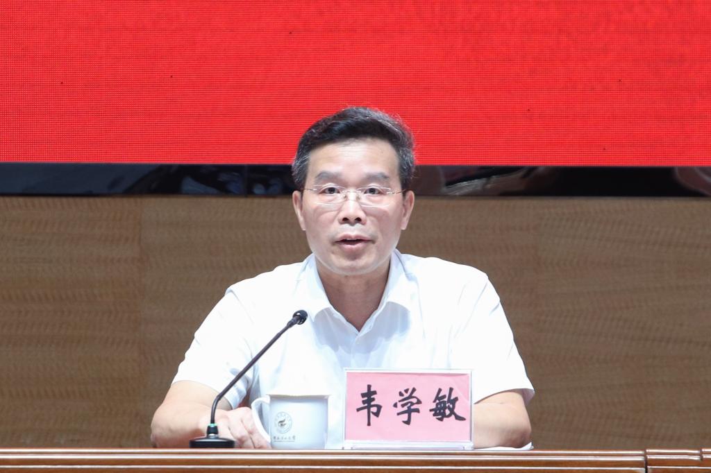 自治区纪委监委驻校纪检监察组组长,学校党委常委、纪委书记韦学敏代表学校纪委作工作报告