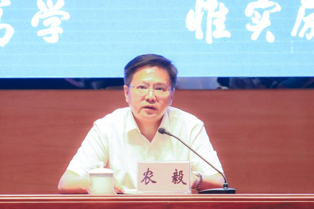 农毅对学校下半年重点工作作出全面部署,强调要深入贯彻落实全区高等教育高质量发展咨询会精神,坚持以高质量发展为导向,进一步统一思想、明确目标、真抓实干,统筹推进教育、科技、人才一体化发展。他要求,要持续加强政治建设,确保高质量完成中央和自治区党委巡视迎检和整改任务;精心筹备学校第四次党代会,系统谋划学科专业优化、人事机构改革和“十五五”规划编制等重点工作;主动融入区域发展格局,深化产教融合,提升学科专业与产业发展的契合度、支撑度和匹配度;扎实做好70周年校庆筹备工作,以校庆凝聚共识、汇聚合力,推动学校事业发展迈上新台阶。农毅强调,要大力弘扬桂工精神,积极营造务实肯干、奋发有为的工作氛围,进一步理清干事思路、增强干事本领、砥砺干事韧劲,以实干实绩奋力开创学校高质量发展新局面。