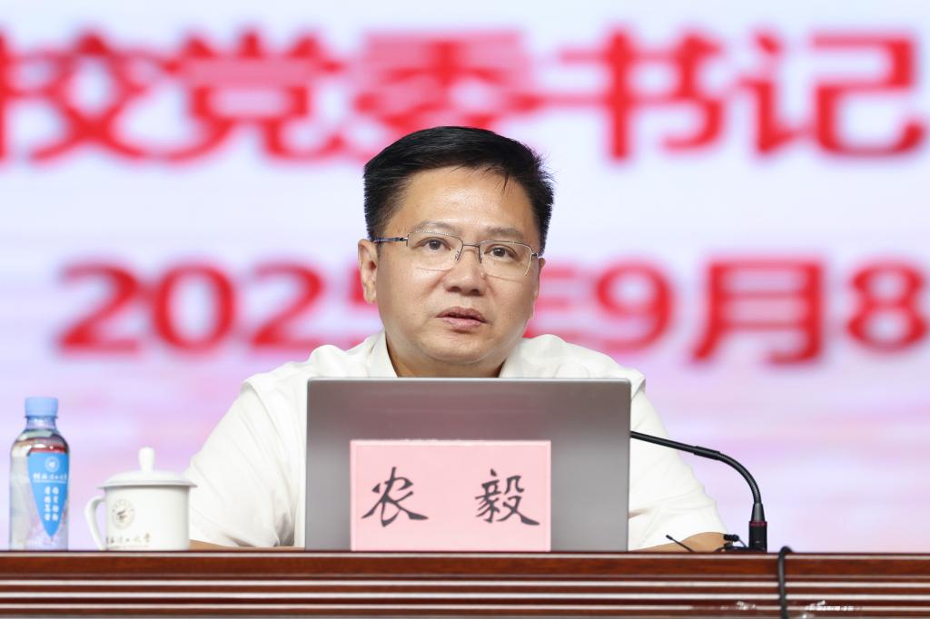 结合新时代青年敢作善为的生动实践,农毅对全体桂工新生成长成才提出四点希望:一是校准信仰坐标,踏实奋进脚步。要始终心怀“国之大者”,把个人追求融入党和国家事业,让理想在日常积累中扎根生长;二是既要读万卷书,更要行万里路。要珍惜大学时光,在桂工的优良学风与科研平台中深耕专业、拓宽视野,更要走出“象牙塔”,到基层一线“自找苦吃”“摸爬滚打”,在“知行合一”中经风雨、见世面、长才干;三是既要练真本领,更要修好德行。要以国家需求为导向,朝着“厚基础、多领域、强实践”的目标提升素养、增强能力,同时自觉践行社会主义核心价值观,传承好“桂工精神”,做精神充实、品德高尚的新时代大学生;四是既要珍惜时光,更要无惧挑战。警惕“躺平”“摆烂”“摸鱼”等消极思想,珍惜师生情、同学谊,养成良好的生活习惯,练就坚韧不拔的意志,以乐观豁达的心态应对困难与挑战。