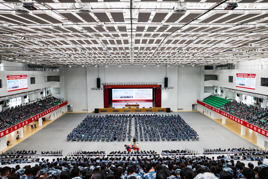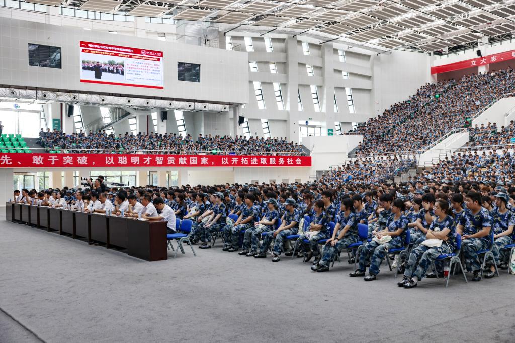 学校2025级新生“开学第一堂党课”在雁山校区新体育馆开讲