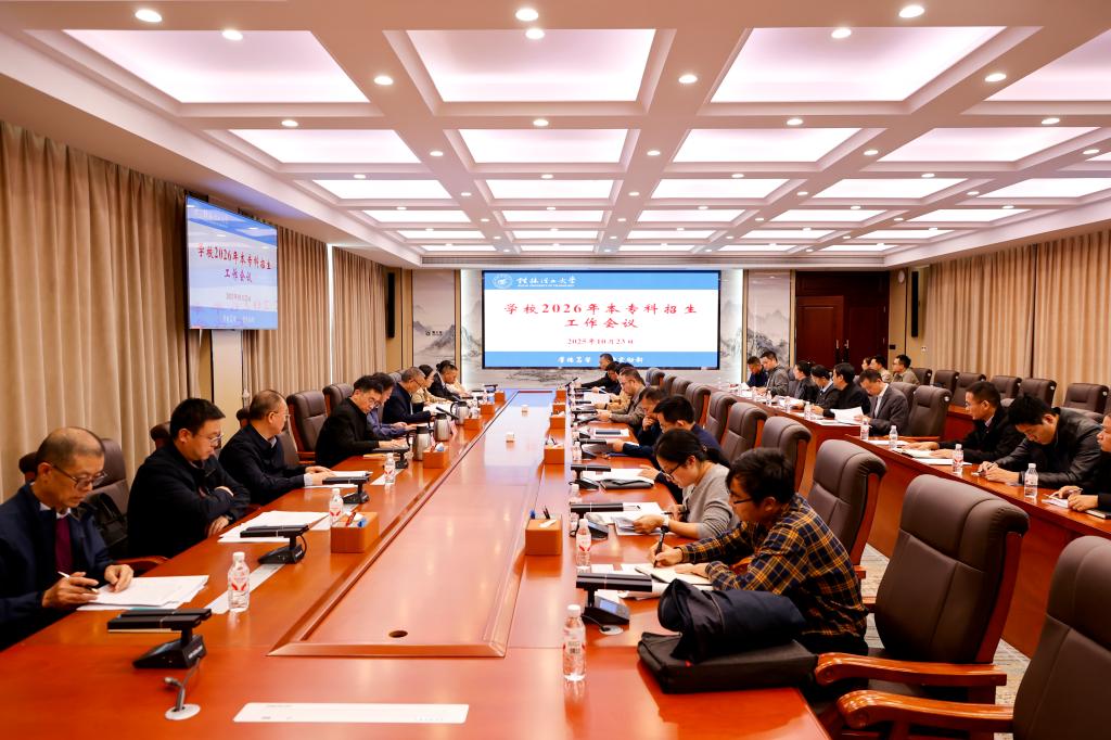 10月23日下午,学校在雁山校区第三会议室召开2026年本专科招生工作会议。校党委书记农毅,党委副书记、校长王敦球出席会议并讲话。会议由校党委常委、副校长王磊主持。