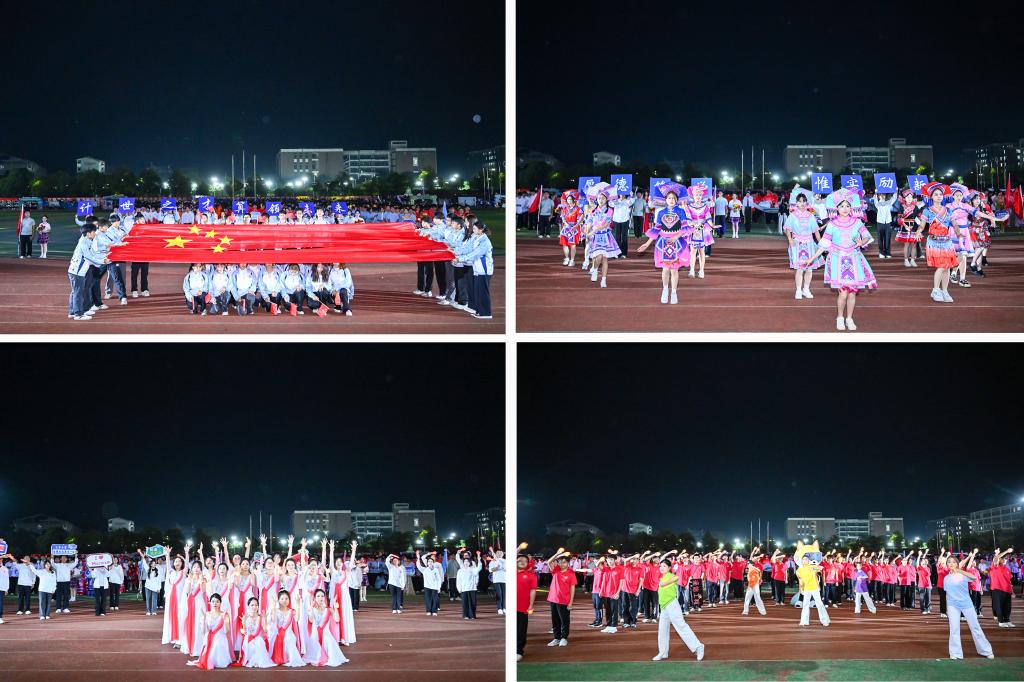 开幕式在高亢嘹亮的《运动员进行曲》中拉开帷幕。国旗班方队步伐铿锵、身姿挺拔,庄严地护卫鲜艳的五星红旗、校旗、校运会会旗和会徽率先入场。紧随其后的是彩旗队与鲜花队,队员们手中彩旗迎风招展,绚丽鲜花恣意绽放,他们以昂扬的斗志齐声高呼口号,为运动健儿们助威喝彩。随后,裁判员队伍及各学院代表队精神饱满、意气风发地依次走过主席台。各学院方阵创意纷呈、各具特色,整齐划一的步伐与朝气蓬勃的精神风貌,赢得了现场阵阵掌声,充分展现了全校师生团结进取、奋发向上的活力与激情。