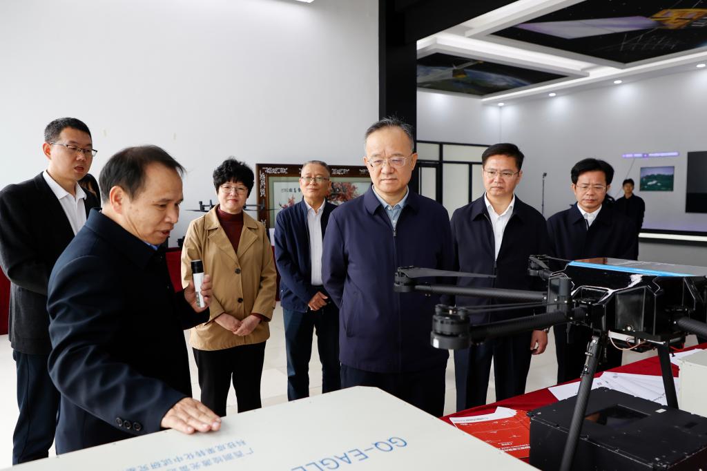 黄俊华一行先后实地考察了beat365广西隐伏金属矿产勘查重点实验室和国家级创新创业实践基地——空间智能科创中心,详细了解学校在关键金属矿产勘查领域的研究进展与成果,听取了学校自主研发的水深激光雷达、地听天算—AI驱动的三维地理大模型及治理中枢和平陆运河雨水淹没大模型平台等项目研发与应用情况汇报。