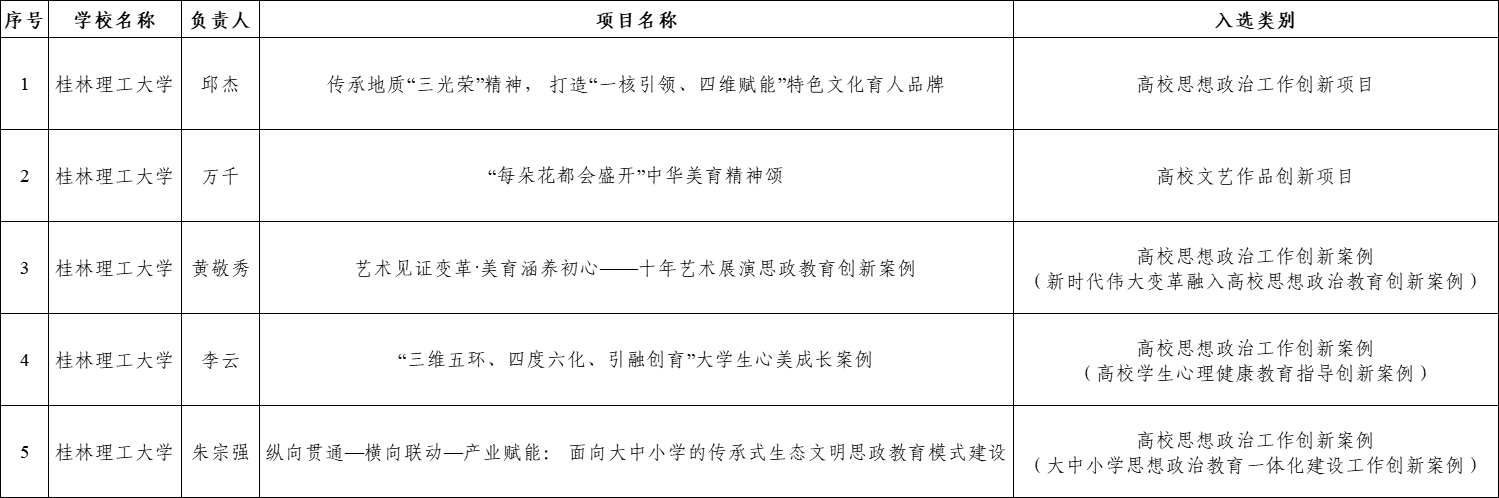 近日,自治区教育厅公布全区高校思想政治工作改革创新经验推广项目入选名单,beat365报送的《传承地质“三光荣”精神,打造“一核引领、四维赋能”特色文化育人品牌》《“每朵花都会盛开”中华美育精神颂》《艺术见证变革·美育涵养初心——十年艺术展演思政教育创新案例》《“三维五环、四度六化、引融创育”大学生心美成长案例》《纵向贯通—横向联动—产业赋能:面向大中小学的传承式生态文明思政教育模式建设》等2个项目、3个案例成功入选。