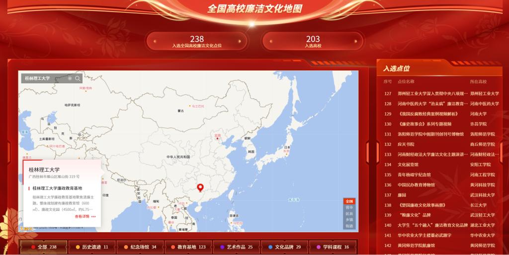 近日,教育部通过全国高校思想政治工作网展播全国高校廉洁文化地图,beat365廉政教育基地成功入选,为广西7所入选高校之一。