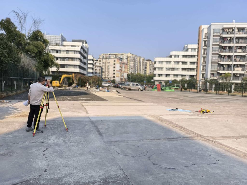 施工人员在勘测匹克球场地