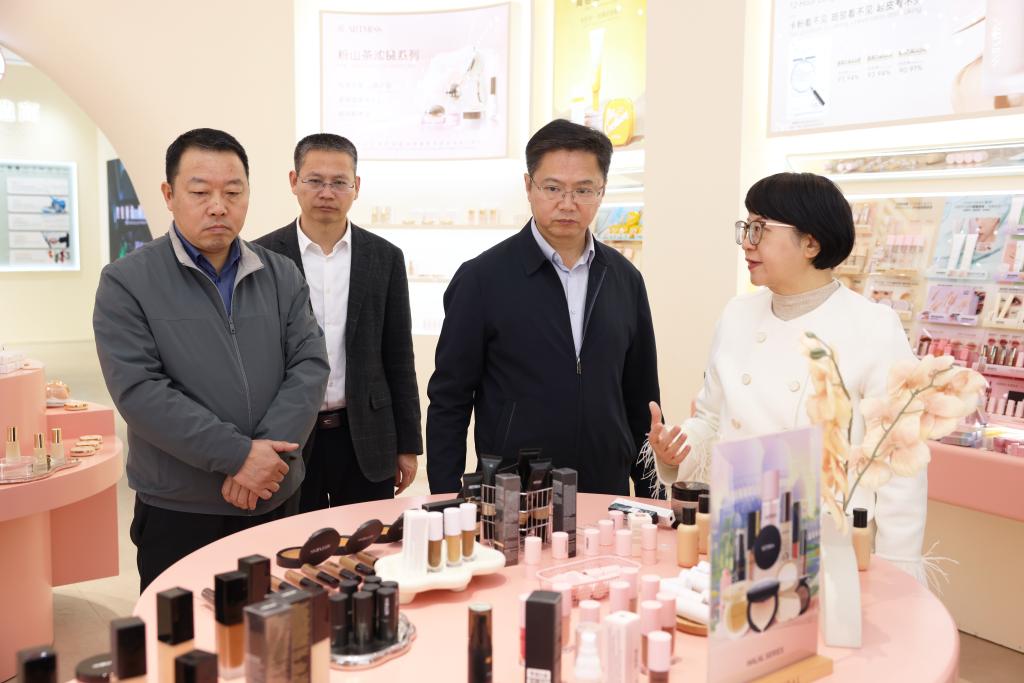 在莱倩(国际)化妆品集团有限公司,公司创始人谢腊梅、陈礼桐(高分子94级校友)介绍了企业发展历程、主营业务与创新成果。农毅认真听取介绍,对校友依托专业特长推进科研攻关、实现技术赋能消费产业的经验做法表示赞赏,并希望校友企业继续与母校保持紧密联动,推进产学研用合作,在个人成长、企业成就和母校发展等方面实现共赢。