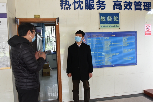 2月25日上午,学校校长解庆林分别到教务处、商学院、土木与建筑工程学院、国际教育学院(国际交流处)等实地调研指导线上教学工作,党办校办有关负责人陪同调研。