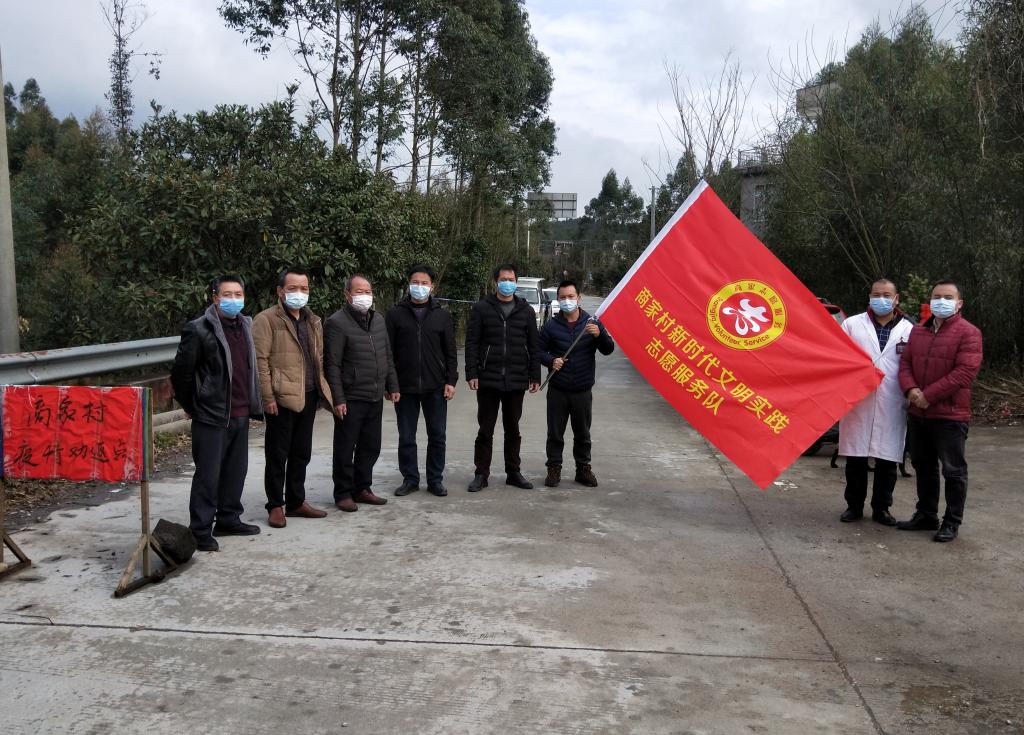 商家村第一书记黎云鹏组织干部在村口对过往车辆、