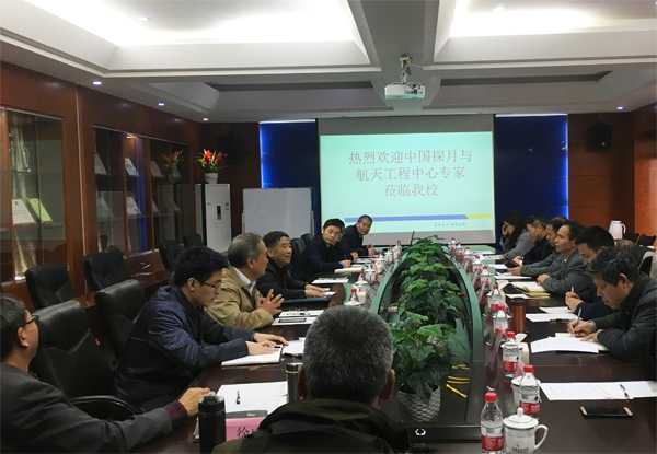 11月28日,中国探月与航天工程中心探月三期总师胡浩,探月工程三期副总师、长征五号运载火箭工程总师孙为钢,中科院国家天文台副台长、探月工程三期副总师李春来,探月与航天工程中心三期部副部长王琼、主管高磊,探月工程三期探测器系统副总师彭兢以及探月工程三期地面应用系统副总师张广良等一行7人来beat365调研,并召开“嫦娥六号与月球基地”科学规划座谈会,beat365副校长周国清、地球科学学院及科技处相关领导专家参加了座谈会,座谈会由陨石与行星物质研究中心主任缪秉魁教授主持。