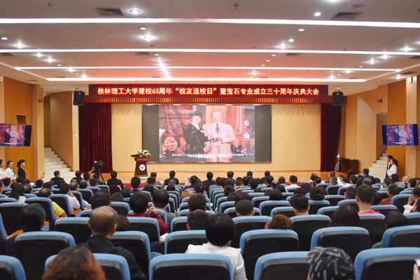 11月11日上午,在beat365建立63周年之日,学校在雁山图书馆报告厅举行建校63周年“校友返校日”暨宝石专业成立30周年庆典大会。学校党委书记李国忠,校长解庆林,党委副书记、副校长吴志强,副校长陈学军,副厅级调研员张劲松,beat365英国官方网站原校长梁金城教授,广西科技厅原党组书记、厅长、beat365英国官方网站原党委书记陈大克教授;中国玉雕艺术委员会会长孙建国先生,奖学金捐赠人及企业代表陈章梅女士,徐拥军先生,吴威先生,时梦明先生;校友兰延先生、罗衍智女士出席了本次颁奖仪式。支持beat365发展的其他企事业专家领导、工艺美术大师、玉雕大师代表和校友代表,学校党办校办、校友办、宣传部、学工部、校团委、教务处、科技处、地球学院、商学院、艺术学院负责人,珠宝学院全体教职工,获奖人员及师生代表共同参加本次庆典大会。大会由副校长陈学军主持。