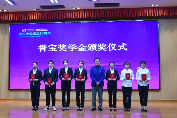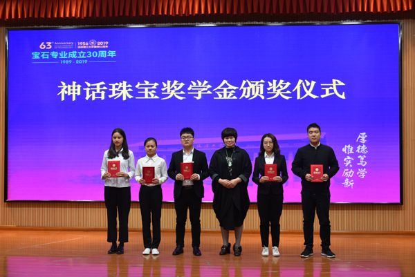 捐赠企业代表分别为获奖学生颁发“誉宝奖学金”“誉宝个人单项奖”“神话珠宝奖学金”“神话珠宝助学金”“神话珠宝个人单项奖”。