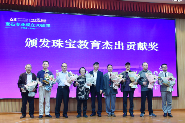 学校校长解庆林与珠宝教育杰出贡献奖获得者合影