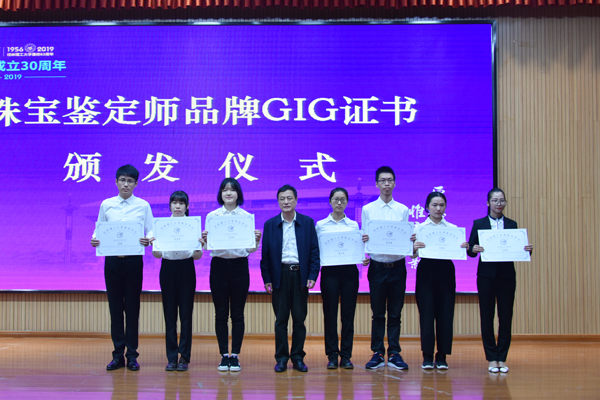 学校副厅级调研员张劲松与珠宝鉴定师品牌GIG证书获得者合影