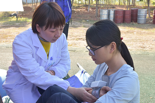 校医院的朱黎医生和她的同事在运动会进行过程中,作为运动员们坚实的后盾片刻不离的守护在运动场旁。她们已经准备好了一系列的药品和医疗设备,以应对在比赛过程中可能出现的突发状况,她们有绝对的专业知识和丰富的经验可以保证运动员的身体健康。朱黎医生还提到举办运动会有利于我们学生身体素质的提高,能够激励我们热爱运动、热爱生活。