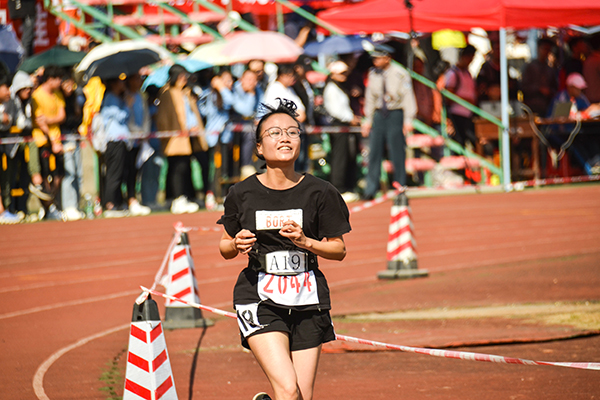 来自理学院的运动员倪梅欣,平时热爱跑步,喜欢一次一次地挑战自己,每次晨跑、夜跑她都会坚持至少跑十公里,在本次女子甲组3000米比赛中她也勇夺冠军。谈及为何在跑道上始终面带微笑时,她表示自己非常享受跑步的过程,她觉得跑步能带给人许多的乐趣。因为热爱,所以坚持,她凭借着自在从容的微笑,成为3000米赛场上最靓丽的一道风景线。