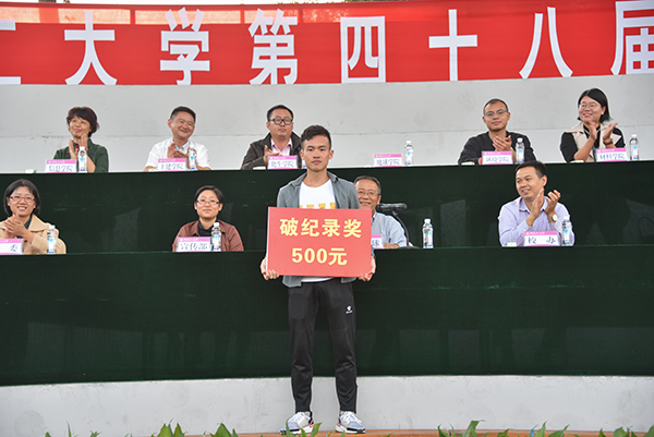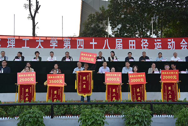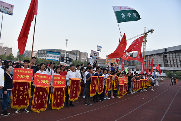 闭幕式上,总裁判长魏建军宣读了本届校运会比赛成绩和各奖项获奖名单。化学与生物工程学院、机械与控制工程学院、艺术学院、旅游与风景园林学院、外国语学院、研究生院获得精神文明奖;地球科学学院、环境科学与工程学院、土木与建筑工程学院、材料科学与工程学院、商学院、测绘地理信息学院获得优秀组织奖;土木与建筑工程学院、商学院、材料科学与工程学院、地球科学学院、化学与生物工程学院、信息科学与工程学院荣获本届运动会团体总分前六名。