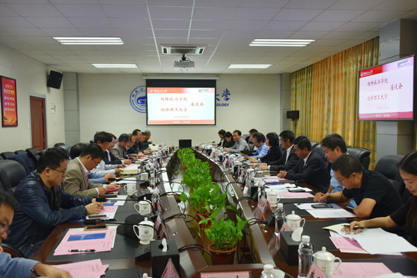 10月31日下午,桂林旅游学院党委书记林娜、校长程道品、副校长林伯明、副校长王文率该校党政办公室、人事处、发展规划处、科研处、教务处、图书馆、旅游管理学院、酒店管理学院、商学院等部门相关负责人来访beat365。学校党委书记李国忠、校长解庆林、副校长陈学军、副校长梁福沛在行知楼A201会议室接待了来访客人,学校对口单位相关负责人参加座谈交流。