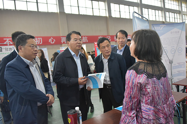校领导到现场指导工作,并与企业招聘工作人员交流