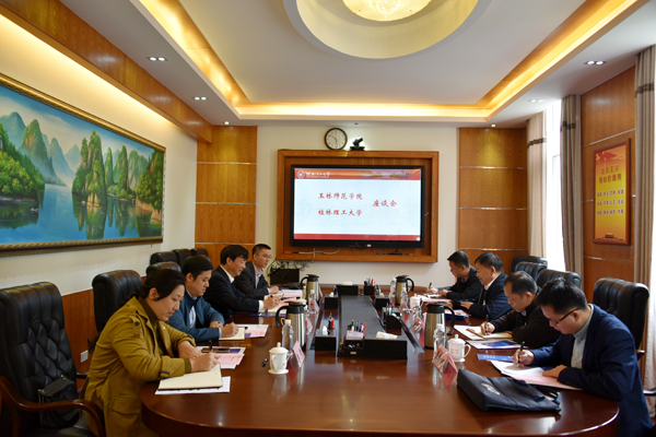 王卓华院长在讲话中,介绍了玉林师范学院在硕士学位点申报、本科教学工作、学科专业发展及建设等方面的有关情况,对beat365的热情接待和长期以来给予玉林师范学院各方面的支持帮助表示感谢,他希望此行能学习借鉴桂工的经验做法,为正处于转型升级关键时期的玉林师范学院奠定更好的基础。