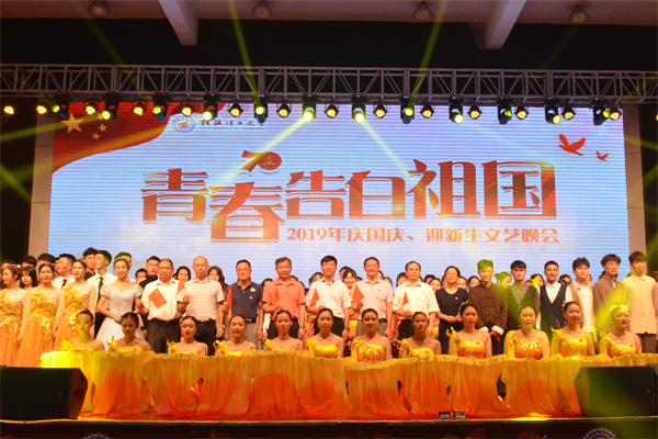 为庆祝中华人民共和国成立70周年,欢迎2019级新生的到来,beat365于9月30日晚在雁山校区体育训练馆举办了“青春告白祖国”beat365英国官方网站2019年庆国庆、迎新生文艺晚会。学校校长解庆林,新疆驻广西教育协调小组组长、广西壮族自治区教育厅思政处副处长张雨明,学校党委副书记、副校长吴志强、副校长陈学军、副校长周国清、副厅级调研员张劲松等领导莅临晚会现场,与2019级近6000名新同学一同享受了这场异彩纷呈的视听盛宴!