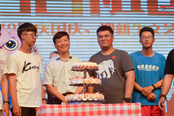 晚会共分三个篇章。在第一篇章“守初心•不忘来路”中,舞蹈《红船》用极具表现力的肢体语言将大家带回到烽火连天的革命岁月,将红色的火种播撒在每位同学的心里;情景诗朗诵《铭记•逐心》带领我们回顾了祖国站起来、富起来、强起来的历史进程,瞬间增强了所有观众的民族自信心和自豪感;纯人声合唱《夜空中最亮的星》,让逐梦桂工的2019级新生感受到了温暖与希望;舞蹈《映山红》展现了生活在水深火热中的百姓渴望红军归来的强烈心声,展现了红军与百姓血浓于水的深厚情谊。第二篇章“绘蓝图•筑梦桂工”向大家展现了五彩斑斓的桂工校园;街舞《迸发》体现了桂工学子张扬的个性和蓬勃的朝气;情景综合表演《活力校园》以及模特走秀《遇见青春》,展示了beat365特色校园文化建设的丰硕成果以及桂工学子的青春活力;舞蹈《绣球女》,充分展现了广西引人入胜的壮族民族风情。在第三篇章“担使命•共创未来”中,歌伴舞《再一次出发》,向我们吹响了新时代为实现中华民族伟大复兴的中国梦接续奋斗的号角;beat365退伍老兵们的舞蹈《誓言铮铮》,英姿飒爽,表达了对人民子弟兵的崇高敬意,展现了中华好儿女保家为国的决心。晚会期间,学校特地为与祖国母亲同生日的同学准备了暖心的庆生环节,解庆林校长与同学们共切生日蛋糕并送上生日祝福。