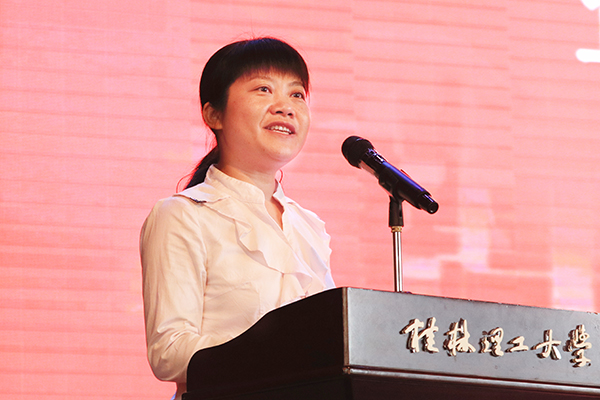 教师代表机械与控制工程系王丽萍老师对新同学们加入桂工大家庭表示欢迎,她结合个人的求学经历,建议同学们尽快适应新的生活,树立目标,持之以恒,不畏困难、发奋自强,做一名优秀的大学生。同时,也表达了作为一名教师,匠心育人的初心和责任。
