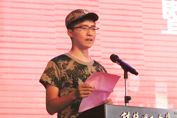 新生代表电气与电子工程系建筑电气与智能化专业付锦洲同学发言