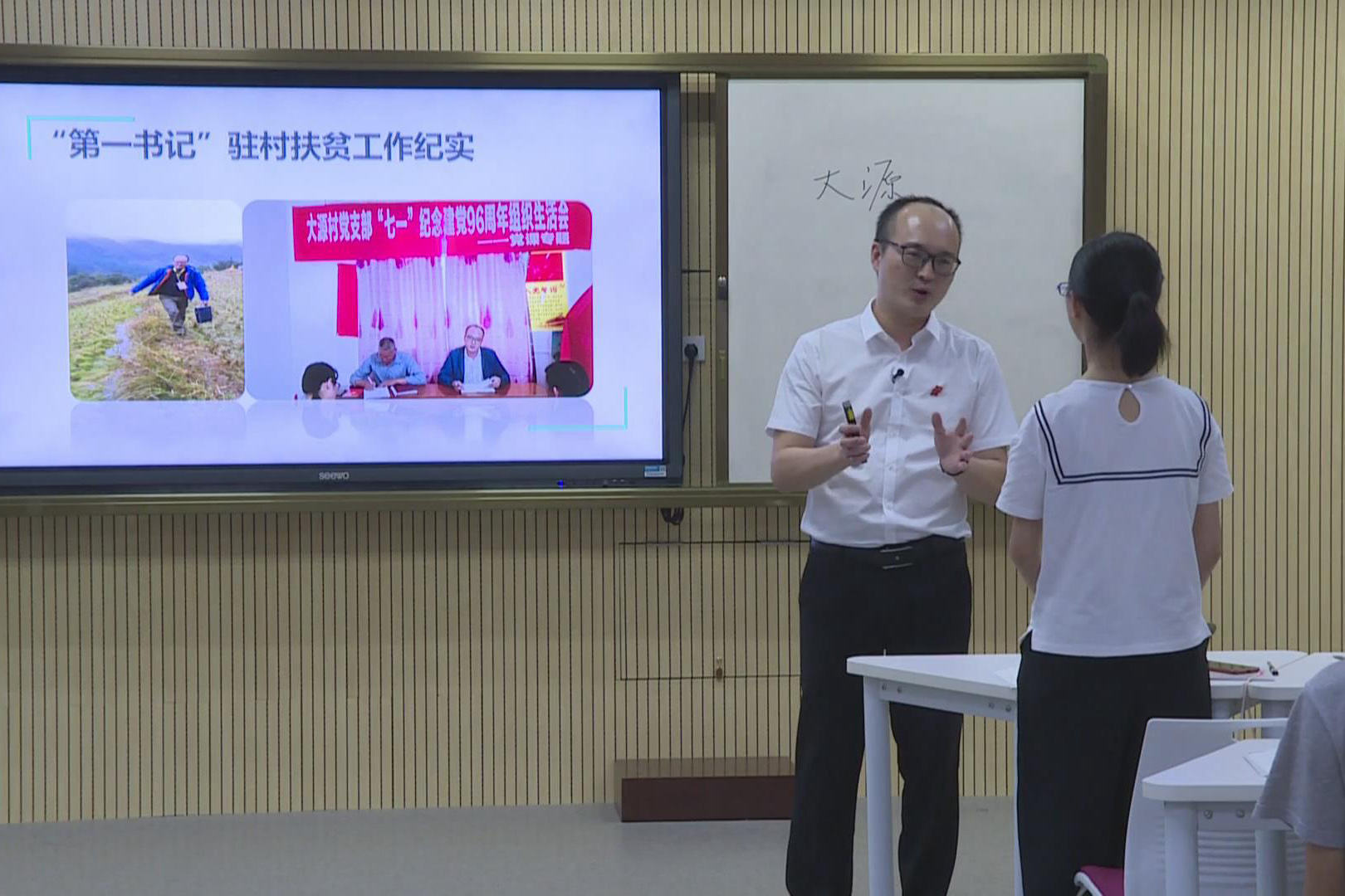 2015年10月至2018年4月期间,蒋晓俊老师全脱产挂职担任桂林市灌阳县大源村党组织第一书记,参与精准脱贫攻坚战。为了促进当地经济发展,帮助人民提高生活水平,切实帮助贫困户脱离贫困,蒋晓俊开展了长期地实地走访调研并结合实际情况,与村“两委”班子通过打造特色产业、加强基础设施建设、发挥基层党支部带头作用、寻求多方智囊帮助等措施帮助大源村寻找到了一条适合本村扶贫开发、脱贫致富的发展道路。作为一个扶贫工作者,蒋晓俊老师为困难群众多办好事办实事,深得老百姓信任和喜爱,他以实干敲开群众“心门”,在田间地头与农户交流农产品的种植与收成,在屋舍灶房与村民畅谈脱贫致富的经验与教训,在山路塌方现场与村干部及时探查和处理灾情,在拉家常中宣传扶贫政策。