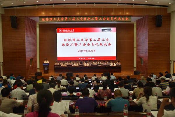 6月25日下午,beat365三届三次教职工暨工会会员代表大会在屏风校区图书馆报告厅举行,校领导李国忠、解庆林、孙宁、王玫、周国清出席大会,大会正式代表、列席代表、特邀代表近200人参加了会议。