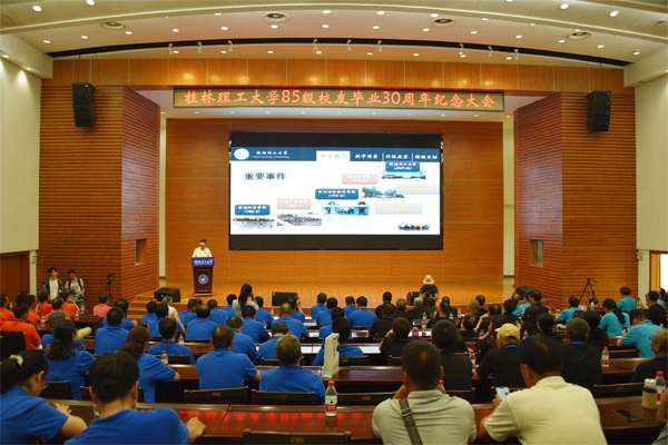 解庆林校长在大会上致辞并介绍学校建设发展情况。解校长首先对校友们返校聚会表示热烈欢迎和亲切地问候。他表示,30年来,校友们努力工作把青春和汗水、智慧和力量,无私奉献给祖国建设事业,为母校争得了荣誉,母校为校友们取得的成就深感骄傲和自豪。解校长从“办学格局不断完善、教学质量不断提高、科技成果不断显现、围绕目标继续奋进””四个方面向85级校友详细介绍了近年来学校取得的各项成绩,一组组数据、一幅幅图片展示了学校事业蓬勃发展、蒸蒸日上的喜人局面。去年5月,广西公布了一流学科建设名单,beat365地质、环境、材料、测绘、土木(培育)5个学科入选,在学校建设发展的关键时期,解校长希望各位校友,能够一如既往地关心支持母校各项事业的发展,希望桂工和桂工广大校友在互相关心、互相扶持中,携手相牵,共创辉煌!