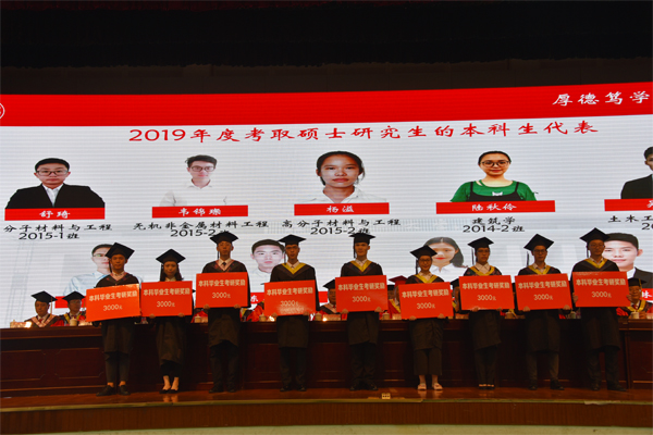 学校对赵亚男等370名优秀本科毕业生、黄倩雯等50名优秀毕业研究生、张雅祺等4名研究生支教团成员和卢仁刷等14名志愿服务西部计划毕业生、480名考取硕士研究生的本科毕业生、刘攀峰等70名自治区优秀大学毕业生予以表彰。在主席台前排就坐的领导为优秀毕业生代表、研究生支教团成员、志愿服务西部计划毕业生、考取硕士研究生的毕业生代表颁发了荣誉证书。