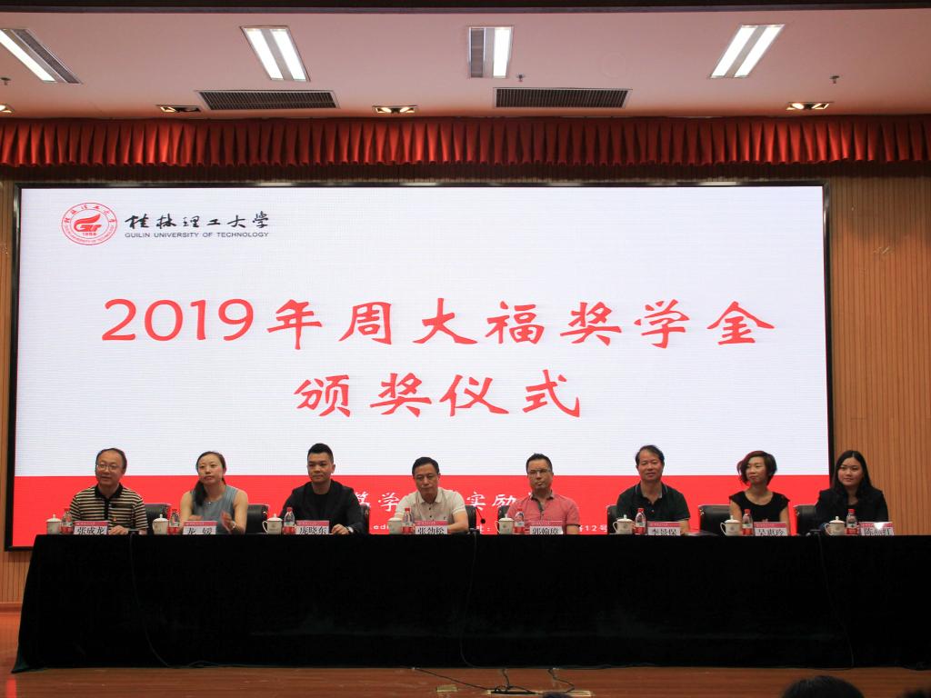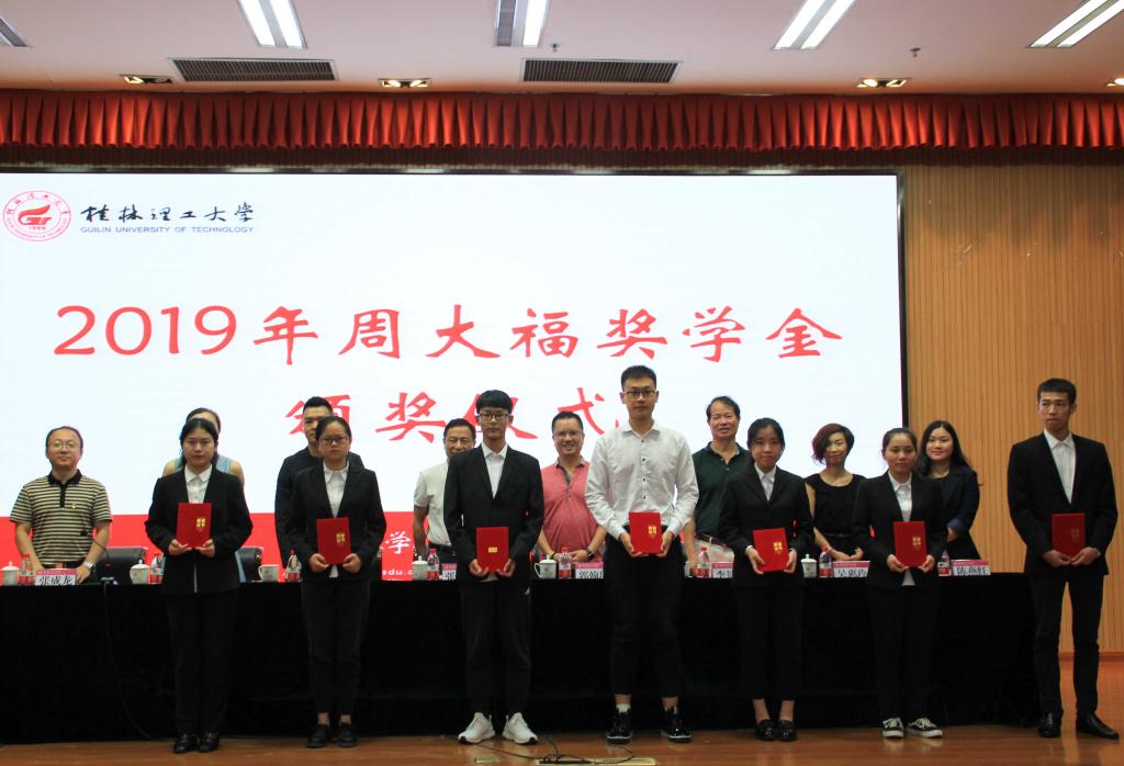6月13日上午,beat365英国官方网站2019年周大福奖学金颁奖仪式在雁山校区图书馆报告厅举行。学校副厅级调研员张劲松,周大福珠宝金行有限公司华南区域总经理郭翰璋出席仪式。党(校)办、学工(部)处、招生就业处等相关负责人以及相关学院党委副书记、辅导员和全体获奖学生参加了仪式。