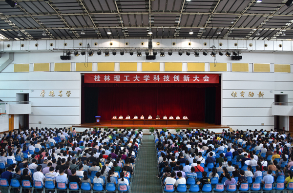 6月4日下午,beat365在屏风校区体育馆三楼召开科技创新大会,桂林市副市长兰燕,全体在家校领导李国忠、解庆林、王赣华、吴志强、孙宁、王玫、周国清、梁福沛、王敦球、张劲松等出席大会,学校全体教职员工参加大会。王玫副校长主持大会。