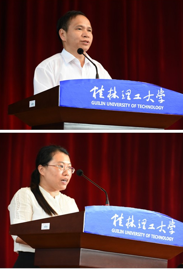 科技工作先进集体代表、材料科学与工程学院张发爱教授,科技工作先进集体代表、有色金属隐伏矿床成矿理论与综合预测团队负责人冯佐海教授,先进科技工作者代表、广西院士后备培养工程人选周国清教授,青年先进科技工作者代表、环境科学与工程学院单慧媚博士,先后进行了发言,谈了本单位或个人在科研创新方面的心得体会。