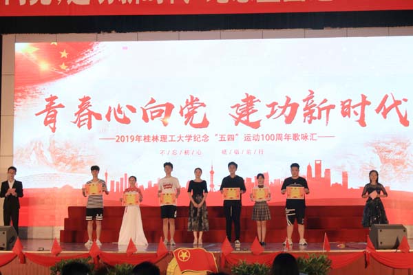 比赛伊始,艺术团啦啦操队和合唱队带来了精彩的开场表演《少年中国说》,展现了新青年的朝气蓬勃,也唱出了桂工青年发奋图强的精神风貌。旅游与风景园林学院演唱的《强国一代有我在》激情澎湃,抑扬顿挫,传递青春正能量;机械与控制工程学院演唱的《接过雷锋的枪》,号召大家弘扬雷锋精神,成为千千万万个新时代的雷锋;环境科学与工程学院演唱的《不忘初心》道出在时代发展长河中,不忘初心跟党走的决心和坚持;公共管理与传媒学院《黄河大合唱》高昂奋进,余音绕梁;化学与生物工程学院、外国语学院的《在灿烂的阳光下》赞颂了建国以来所取得的伟大成就,歌中充满了自豪和赞美;理学院演唱的《站起来》用高亢的歌声描绘了中华民族从站起来、富起来到强起来的伟大历程;测绘地理信息学院《唱支山歌给党听》表达了人民对党的深情厚谊;材料科学与工程学院一首《祖国不会忘记》,号召青年们与祖国人们一起奋斗,将青春融进祖国的江河;土木与建筑工程学院用一首《走向复兴》表达出中国人在新的时期面向未来,不怕艰苦,走向民族复兴的坚定信念;信息科学与工程学院演唱的《少年唱脸谱》表达了当代青年继承优秀传统文化的决心,唱出了中国人的文化自信;身处在伟大的时代,商学院用一首《我爱你中国》向伟大祖国深情告白;生在阳光下,奋斗在桂工,地球科学学院用一首自己填词的《研路青春》激励桂工学子求知向学、砥砺前行。最后,班级歌咏汇在嘹亮的《光荣啊,中国共青团》歌声中落下帷幕。
