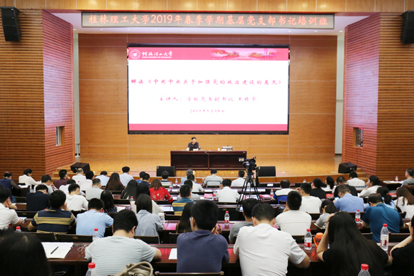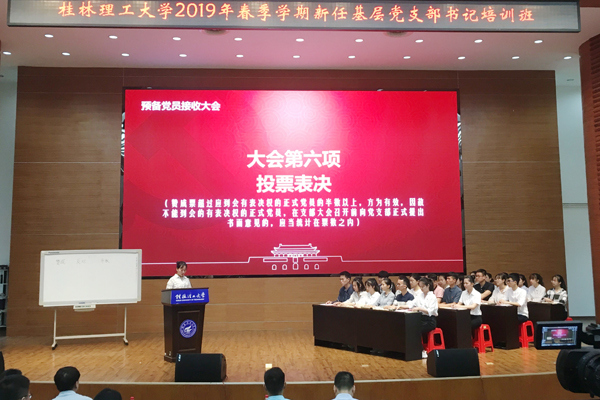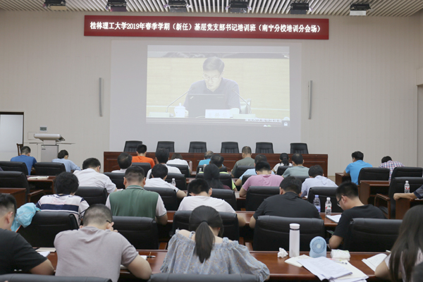 为深入学习贯彻习近平新时代中国特色社会主义思想和党的十九大精神,贯彻落实《中国共产党支部条例(试行)》相关要求,扎实推进学校巡视整改工作,不断提高(新任)基层党支部书记履职能力,切实推进基层党支部全面进步和全面过硬,5月18日至5月19日,学校在屏风校区图书馆报告厅举办2019年春季学期(新任)基层党支部书记培训班,学校全体(新任)基层党支部书记230余人参加了本次培训,南宁分校采取同步视频直播的方式参加了培训。