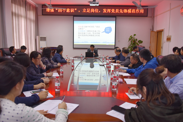 5月9日下午,校长解庆林以《增强“四个意识”,立足岗位,发挥党员先锋模范作用》为题为材料科学与工程学院全体教工党员讲授了党课。解庆林校长结合国家发展大势和学校办学实际对“四个意识”的内涵和“党员干部应该怎么做”进行了深入的解读阐释,并指出党员干部要把讲政治作为自身修炼的核心;要时刻关心大局,自觉增强大局意识;要时刻牢记党员身份,自觉增强核心意识;要自觉增强看齐意识,始终做到经常看齐、主动看齐、全面看齐。解庆林校长强调,材料科学与工程学院全体教工党员要紧抓学校发展机遇,凝练方向,突出特色,加快推进“一流学科建设”工作,要努力实践“四个意识”,立足本职工作,在学校“双一流建设”中充分发挥党员先锋模范作用,破解难题、勇立新功!